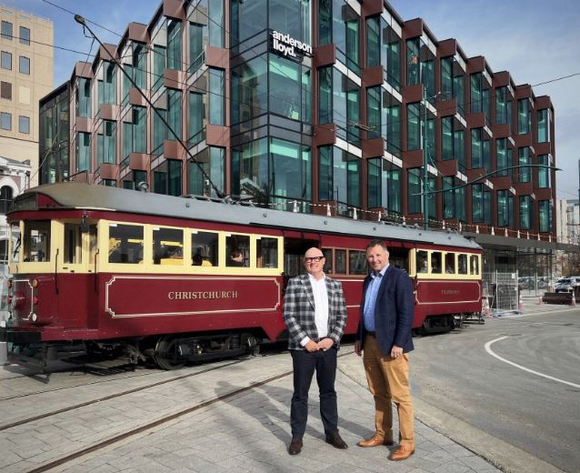 Pictured here are Richard Greenaway, CEO of Anderson Lloyd, and Michael Flatman, CEO of Māia, standing in front of what will be Anderson Lloyd’s new office space at The Regent, nestled in the heart of Cathedral Square. For more information contact: