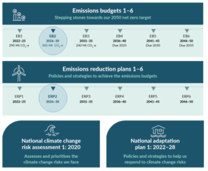 A key mechanism in our climate response is the use of “emissions budgets”. Each budget represents the total quantity of emissions that the country is allowed to release during a particular period. They are intended to act as “stepping stones” towards reaching our