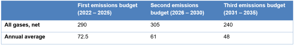 The first three emissions budgets are as set out below: